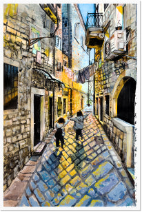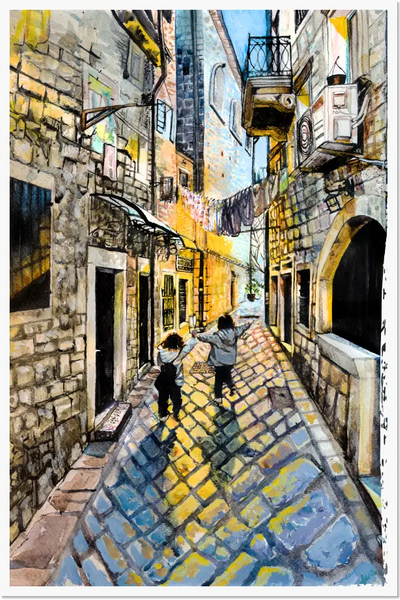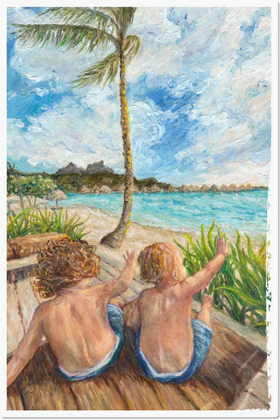 I'm Cam. Modern Daydream began the year we took our two boys out of school to travel the world. Days started with early walks, and we often ended up in art museums together. Our phones quickly filled with photos and little videos that felt deeply sentimental. At the same time, I'd hit a professional plateau and felt lost and uninspired. I wanted to build something that aligned with my true self, something I could create with my kids. After a visit to the Picasso Museum in Málaga, we stepped onto the cobblestones and met an older painter selling small canvases. I realized there are extraordinary artists the world walks past every day.