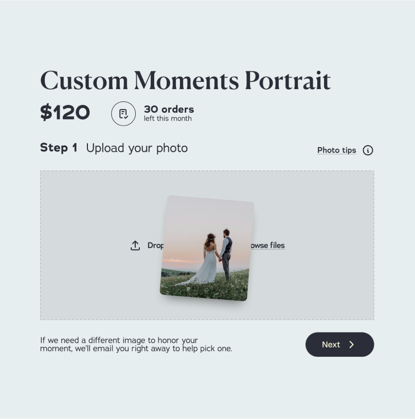 We send a note when your piece begins, when it's framed, and when it heads home.